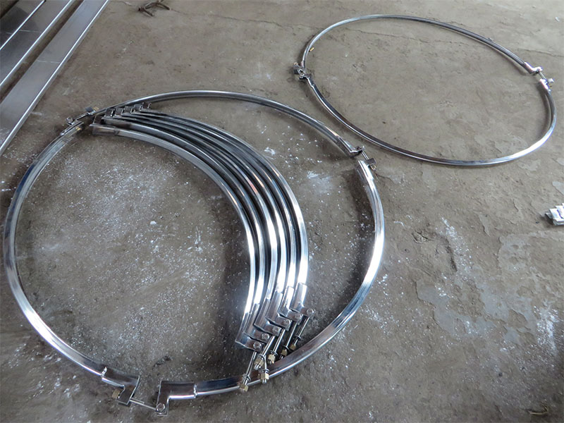 旋振篩鎖緊帶是旋振篩不可缺少的部分,主要起鎖緊振子盤、篩框、沖孔板、網(wǎng)架和篩網(wǎng)的作用,它直接影響篩機(jī)的使用性能,在設(shè)計(jì)和制作的過程中必須嚴(yán)格控制配合尺寸及加工精度,對(duì)其材料的選取也相當(dāng)重要,其材質(zhì)主要有不銹鋼和普通碳鋼。此外我公司還可以根據(jù)用戶需要進(jìn)行特殊設(shè)計(jì)。